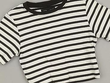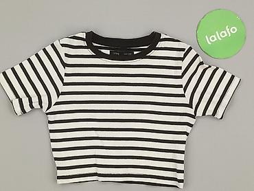 Bluzka w paski damska - Krój: krótki top (crop), dopasowany - Dekolt: bardzo głęboki, zaokrąglony - Rękaw: krótki - Wzór: poziome paski w kolorze niebieskim i białym - Rozmiar z metki: S - Skład m...