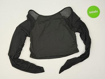 Czarny krótki top damski z długim rękawem - Fason: crop top, okrągły dekolt, długie rękawy zakończone szerokimi mankietami - Dół z elastyczną gumką – lekko marszczony, dobrze dopasowuje się do syl...Stan: