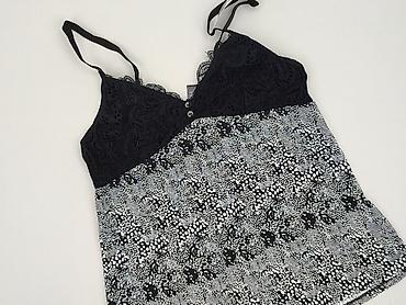 Top damski na ramiączkach, czarny, z koronkową górą - Krój: dopasowany, bez rękawów, cienkie regulowane ramiączka - Dekolt: prosty; górna część z dekoracyjną koronką w kwiatowy wzór - Detal: kontra...
