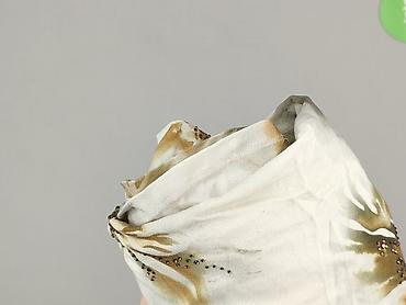 Top damski bez rękawów z lekkiego, półprzezroczystego materiału. Wzór: okręgi w odcieniach granatu, niebieskiego, bieli i złamanej żółci na drobno nakrapianym tle. Krój luźny, przewiewny, idealny n...