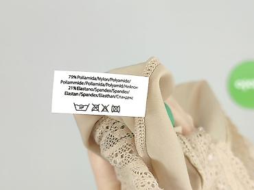 Top damski na ramiączkach, one size - Kolor: beżowy/karmelowy - Fason: krótki top typu tank, delikatnie dopasowany - Ramiączka z metalowymi kółkami ozdobnymi - Przód z nadrukiem w pasach (litery i...Stan: