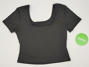 Czarny top damski SHEIN - Model: krótki top crop z krótkim rękawem - Fason: asymetryczne marszczenia po prawej stronie, delikatnie drapowany przód; okrągły dekolt - Materiał: 95% poliester, 5% ela...