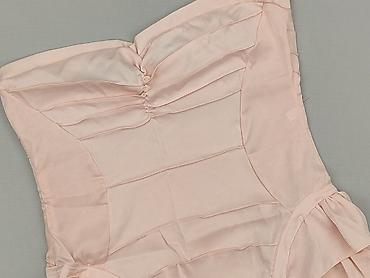 Bluzka damska bez rękawów, koronkowa, pudrowy róż, rozmiar M. - Fason: dopasowany top z delikatną baskinką. - Kolor: jasny, pudrowy róż. - Przód: bogato zdobiona, ażurowa koronka z motywem kwiatow...