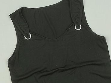 Czarna damska koszulka bez rękawów - Krój: klasyczny top/singlet z okrągłym dekoltem - Kolor: czarny, gładki - Materiał: cienka, miękka dzianina (miła w dotyku, lekko elastyczna) - Długość: standa...