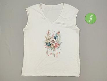 Biała damska koszulka bez rękawów (top) z ażurowym wzorem. - Rozmiar: L - Krój: bez rękawów, dekolt w serek z krótką listwą i trzema ozdobnymi guzikami; delikatnie zaokrąglony dół - Materiał: 95% ...