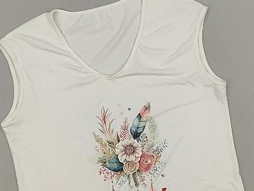 Biała damska koszulka bez rękawów z nadrukiem kwiatów i piór