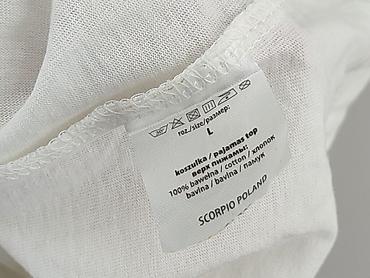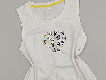 Biała damska koszulka bez rękawów (top) z ażurowym wzorem. - Rozmiar: L - Krój: bez rękawów, dekolt w serek z krótką listwą i trzema ozdobnymi guzikami; delikatnie zaokrąglony dół - Materiał: 95% ...