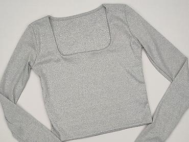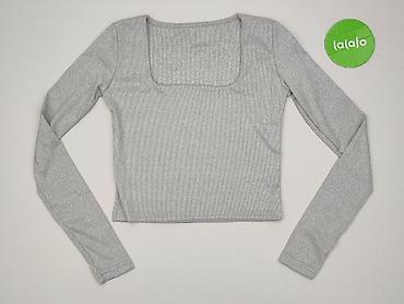 Szary, prążkowany crop top damski - Krój: krótki crop, luźniejsze rękawy, okrągły dekolt - Kolor: jasnoszary melanż z drobnym prążkiem - Rozmiar z metki: L - Skład materiału: 96% poliester, 4% spa...
