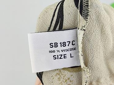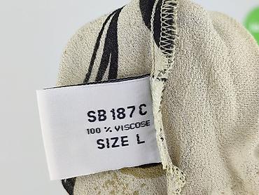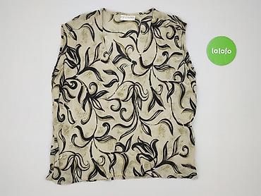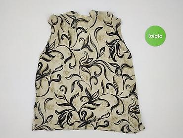 Top damski na ramiączkach, rozmiar L. - Krój: bez rękawów, dekolt w kształcie litery V z ozdobnym panelem - Wzór: bogaty, ornamentalno-kwiatowy print w odcieniach bieli i beżu na czarnym tle; deko...