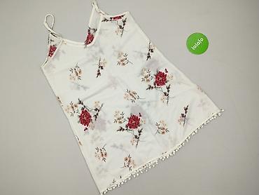 Top damski na ramiączkach, rozmiar S. - Krój: prosty, z dekoltem w kształcie litery V. - Ramiączka: cienkie, z możliwością regulacji długości. - Wzór: kwiatowo-motylowy, kolory ziemiste – odcienie ...