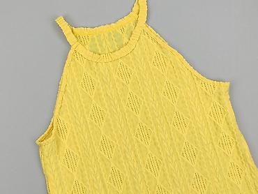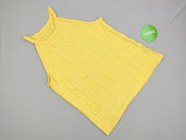 Żółty top damski bez rękawów - Rozmiar: 44 (na metce) - Fason: lekko taliowany, z marszczeniem pod biustem podkreślającym sylwetkę - Dekolt: łódkowy - Długość: do bioder - Materiał: cienka, miękka...
