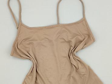 Top damski Reserved Eco Aware, rozmiar XS - Krój: krótki top na ramiączkach - Kolor: beżowy/nude - Materiał: prążkowana dzianina z metki 70% wiskoza (modal), 30% poliester – miękka, elastyczna, pr...