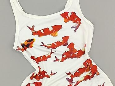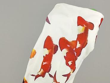 - Kolor: biały z całopowierzchniowym nadrukiem czerwono‑pomarańczowych ryb koi