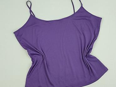 Fioletowa damska bluzka/top na ramiączkach. - Krój: luźny, z poszerzanym dołem/ściągaczem u dołu - Dekolt: okrągły lekko marszczony z przodu - Ramiączka: cienkie, krzyżujące się na plecach - Długo...Rozmiar: