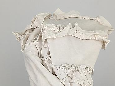 Top damski bez rękawów, rozmiar S. - Kolor: ecru/łamana biel - Krój: kopertowy dekolt V z odcięciem pod biustem, lekko dopasowany - Detale: delikatne falbanki z tiulu przy dekolcie i pachach - Mate...