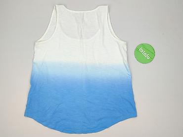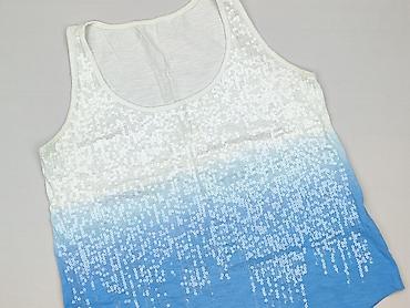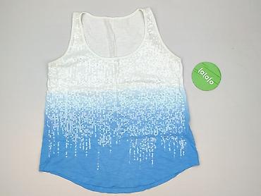Damski top na ramiączkach w rozmiarze M, wykonany w 100% z bawełny, co zapewnia komfort noszenia. Charakteryzuje się efektem ombre, przechodzącym od bieli na górze do błękitu na dole, ozdobiony subtelnymi cekinami tworzącymi wzór spadającej kaskady. Idealny na letnie dni lub jako element stylizacji na specjalne okazje, dodając blasku każdemu zestawowi.