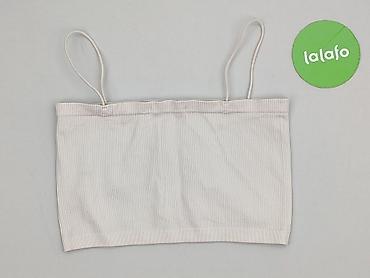Top typu bandeau Sinsay - Model: biały, gładki, bez ramiączek (bandeau/tube top); po bokach wszyte cienkie gumki pomagające dopasować top do sylwetki. - Rozmiar: L (na metce). - Skład materiału: 9...