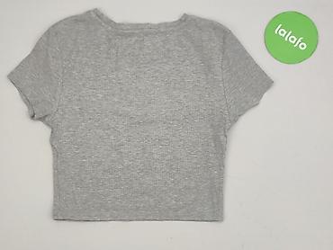Szary, prążkowany crop top damski - Krój: krótki crop, luźniejsze rękawy, okrągły dekolt - Kolor: jasnoszary melanż z drobnym prążkiem - Rozmiar z metki: L - Skład materiału: 96% poliester, 4% spa...