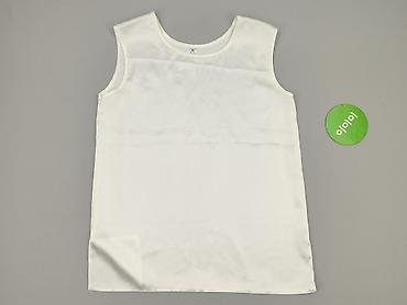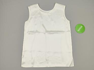 Biała damska koszulka bez rękawów (top) - Krój: prosty, lekko luźny, z zaokrąglonym dołem - Dekolt: okrągły - Rękawy: brak (szerokie wycięcia pod pachami) - Długość: tunikowa, wydłużony tył - Kolo...