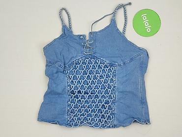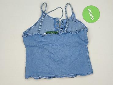 Denimowy top/crop top damski z krzyżującymi się ramiączkami na plecach. - Materiał: 100% bawełna (denim) - Kolor: jasny niebieski, sprany efekt - Zapięcie: z przodu na rząd metalowych napów - F...Rozmiar: