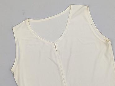 Biała damska bluzka bez rękawów - Krój: luźny, bez rękawów - Dekolt: w kształcie litery V (przód i tył z lekkim przeszyciem modelującym) - Długość: do bioder, lekko zaokrąglony dół - Rozmiar: one ...