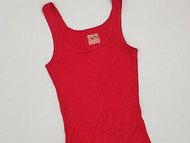 Czerwony top bez rękawów Pull&Bear - Damski, rozmiar EU XS - Krój: dopasowany, bez rękawów, zabudowany dekolt typu crew - Materiał: 95% bawełna, 5% elastan – prążkowana, elastyczna dzianina zapewn...