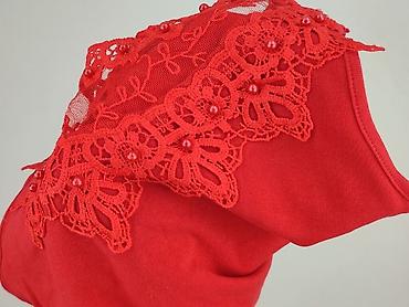 Czerwona koszulka bez rękawów damska - Marka: Ön Yildiz - Rozmiar: XL - Fason: tank top, okrągły dekolt - Detale: aplikacja/koronka z motywem kwiatowym przy dekolcie z przodu - Materiał: 100% bawe...