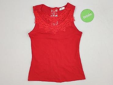 Czerwony top damski na ramiączkach - Krój: prosty, dekolt w serek - Ramiączka z ozdobnymi supełkami po obu stronach - Materiał: 65% poliester, 35% bawełna (metka na zdjęciu) - Rozmiar: S - Lekka, ...