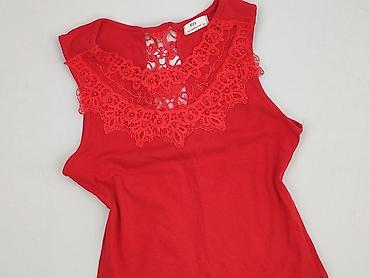 Czerwony top damski bez rękawów - Fason: dopasowany, bez rękawów - Dekolt: w kształcie litery V - Rozmiar z metki: S - Kolor: intensywna czerwień - Materiał: miękka, elastyczna dzianina (przyjemna...