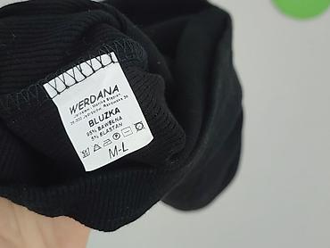 Czarny top damski o fasonie z szerokimi, krótkimi rękawami, wykonany z prążkowanej dzianiny. Dekolt jest zaokrąglony i marszczony, co nadaje mu luźny, swobodny wygląd. Materiał prążkowany zapewnia ...