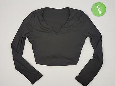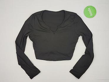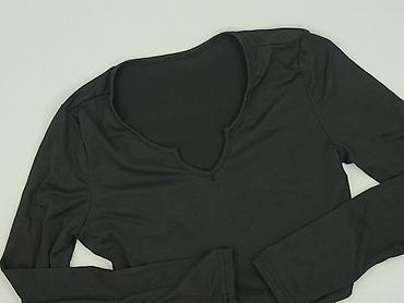 Czarny damski top z długim rękawem - Fason: dopasowany, długość lekko skrócona (crop), okrągły dekolt - Rozmiar z metki: S - Skład materiału: 95% poliester, 5% elastan – elastyczny, gładki, przyje...