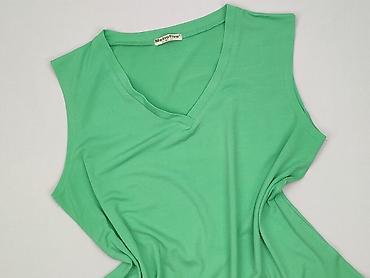 Top damski bez rękawów - Kolor: jasna zieleń (limonkowy) - Fason: bezrękawnik z dekoltem V i lekkim marszczeniem na środku przodu - Materiał: 100% bawełna – miękka, przewiewna dzianina - Rozmiar z...