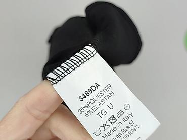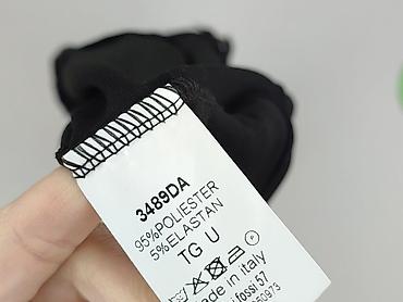 Czarny, prążkowany top damski z krótkim rękawem i asymetrycznym wycięciem przy dekolcie. - Rozmiar: M (na metce) - Krój: dopasowany, elastyczny, długość do bioder - Materiał: 95% bawełna, 5% ...