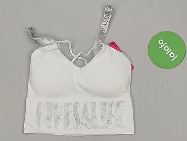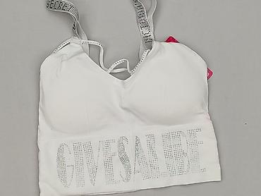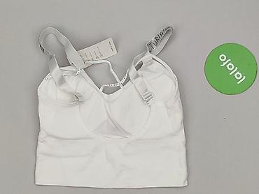 Top sportowy damski – biały z czarną elastyczną taśmą pod biustem. - Krój: miękki top bez fiszbin, cienkie ramiączka z regulacją długości. - Materiał: warstwa wierzchnia 84% poliester, 16% elastan...