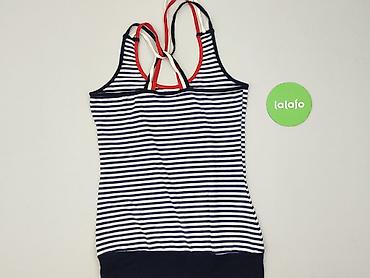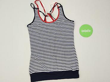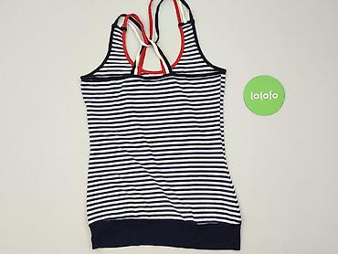 Damska koszulka na ramiączkach (tank top) w paski. - Marka: CENBOS (nadruk wewnętrzny) - Krój: dopasowany, okrągły dekolt, klasyczne ramiączka - Wzór: poziome paski w kolorach granatowym, białym i...Stan: