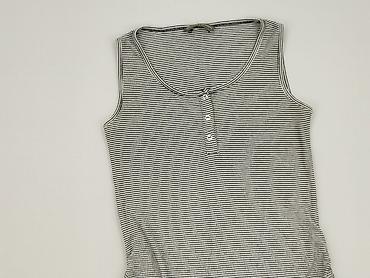 Top damski H&M w paski - Model: bezrękawnik/tank top - Wzór: czarno‑białe poziome paski - Krój: luźny, z obniżonymi wycięciami pod pachami; zaokrąglony dół - Rozmiar z metki: EU 38 (US 8, CA 8) - ...