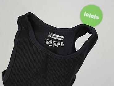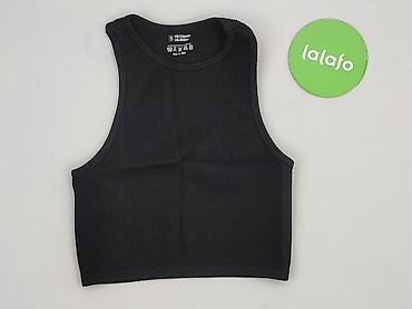 Top damski H&M, rozmiar S. - Krój: crop top, bez rękawów, pod szyję (tank). - Materiał: prążkowana dzianina elastyczna, 95% bawełna, 5% elastan. - Kolor i wzór: czarny z efektownym, rozbielanym wzo...