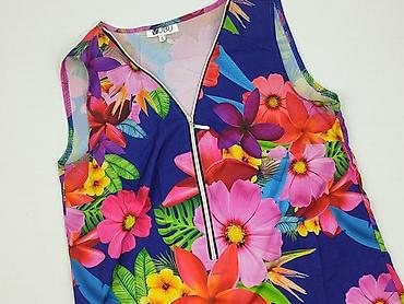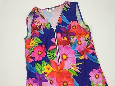 Top damski bez rękawów z tropikalnym nadrukiem - Krój: krótki, prosty, bez rękawów, okrągły dekolt - Wzór: liście w odcieniach zieleni, turkusu, granatu i musztardy; intensywny, wielokolorowy prin...Rozmiar: