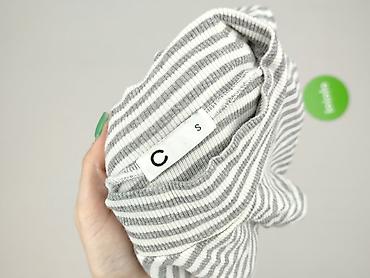 Dzianinowa bluzka damska CLOCKHOUSE (C&A) - Rozmiar: L - Krój: dopasowany, dzianinowy top z krótkim rękawem - Wzór: poziome paski w odcieniach szarości (ciemnoszary + jasnoszary) - Dekolt: szeroki...
