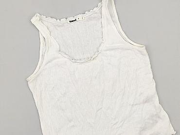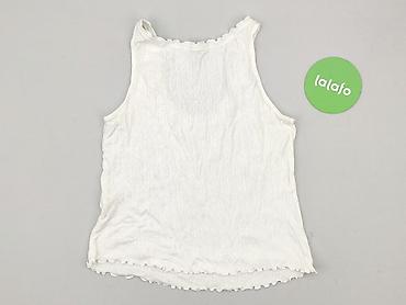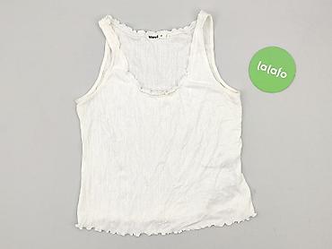Biała damska bluzka na ramiączkach - Krój: top bez rękawów, lekko luźny, długość do bioder - Dekolt: zaokrąglony, z delikatnym marszczeniem z przodu - Ramiączka: szerokie, efektowne, z dekoracyjny...Rozmiar: