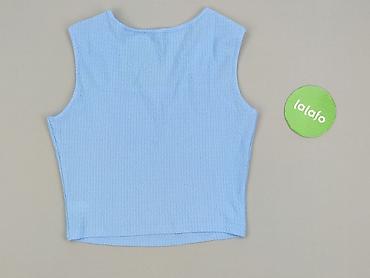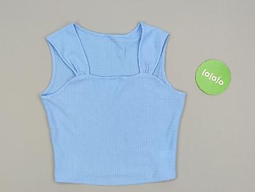 Jasnoniebieski top damski bez rękawów - Rozmiar: XS (metka “C”) - Fason: prosty, krótki top na ramiączkach, okrągły dekolt - Materiał: 50% poliester, 50% wiskoza – lekka, miękka i przewiewna dzian...