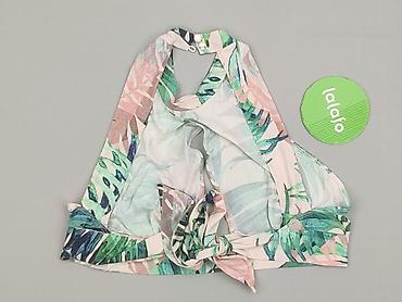 Krótki top damski Sinsay M - Krój: crop top z krótkim rękawem - Dekolt: półokrągły - Wzór: tropikalny – liście, kwiaty i kolorowe ptaki na ciemnym tle - Materiał: 95% bawełna, 5% elastan – miękki,...