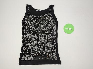 Czarny top damski C&A, rozmiar L - Krój: bez rękawów, lekko rozszerzany, okrągły dekolt - Materiał: elastyczna siateczka zewnętrzna w całości wyszywana czarnymi i srebrzystymi cekinami; wewnątrz g...