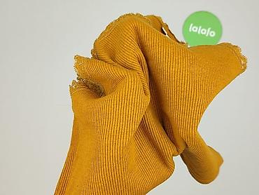 Dzianinowy top damski z krótkim rękawem - Kolor: musztardowy/ochra - Fason: dopasowany, dzianinowy, raglanowe rękawy, krótki rękaw - Dekolt: łódka - Splot: poziome prążki/ryż, wyraźne żebrowanie n...