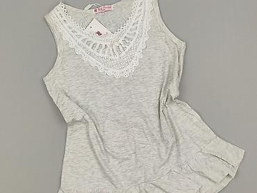 Top damski bez rękawów z koronką - Krój: dopasowany, bez rękawów, dekolt w kształcie litery V - Detale: ażurowa, kwiatowa koronka w kolorze jasnoszarym przy dekolcie i ramionach; subtelne marszcze...