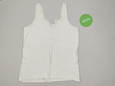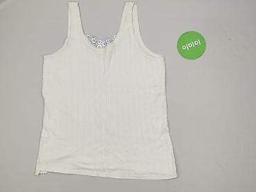 Biała damska koszulka bez rękawów (top) z ażurowym wzorem. - Rozmiar: L - Krój: bez rękawów, dekolt w serek z krótką listwą i trzema ozdobnymi guzikami; delikatnie zaokrąglony dół - Materiał: 95% ...