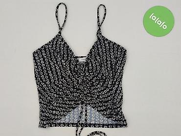 Czarny top damski Reserved, rozmiar S - Krój: luźny, lekko rozszerzany, z delikatnie zaokrąglonym dołem - Dekolt: głęboki V z przodu i z tyłu - Ramiączka: szerokie; z tyłu łączy je ozdobna, ażurow...