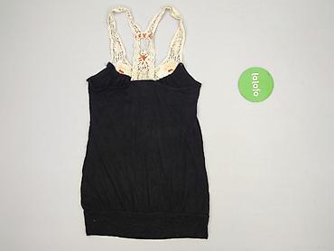 Czarny top damski Reserved, rozmiar S - Krój: luźny, lekko rozszerzany, z delikatnie zaokrąglonym dołem - Dekolt: głęboki V z przodu i z tyłu - Ramiączka: szerokie; z tyłu łączy je ozdobna, ażurow...