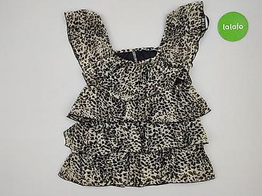 Bluzka bez rękawów Primark – damska - Fason: luźny top bez rękawów z dekoltem w serek, lekko zaokrąglony dół - Wzór: czarno-białe cętki/animal print - Rozmiar z metki: EU 36 (UK 8, US 4) - Materia...