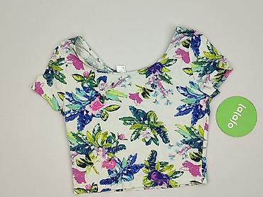 Bluzka damska CROPP, rozmiar L - Krój: krótka bluzka/crop top z krótkim rękawem - Dekolt: głęboki, zaokrąglony z przodu i z tyłu - Wzór: czarno-białe stokrotki z żółtym środkiem na czarnym tle (kw...